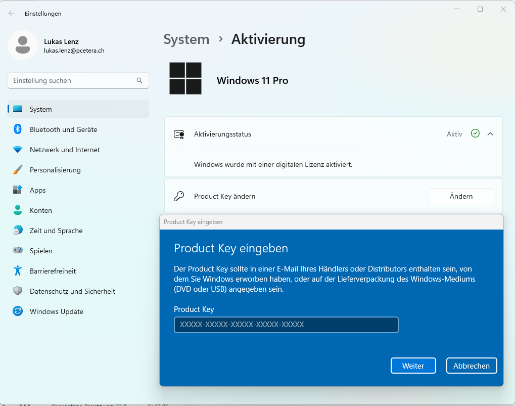 Windows zeigt an, dass es aktiviert werden muss