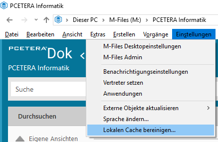 Lösung: Lokalen Cache löschen