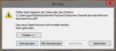 M-Files Fehler "Nicht gefunden" beim Einfügen jeglicher Dokumente